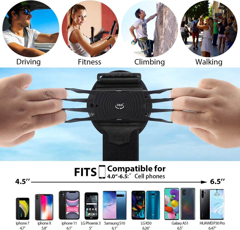 מחזיק טלפון לצמיד לריצה – סיבוב 360 מעלות וקל להסרה