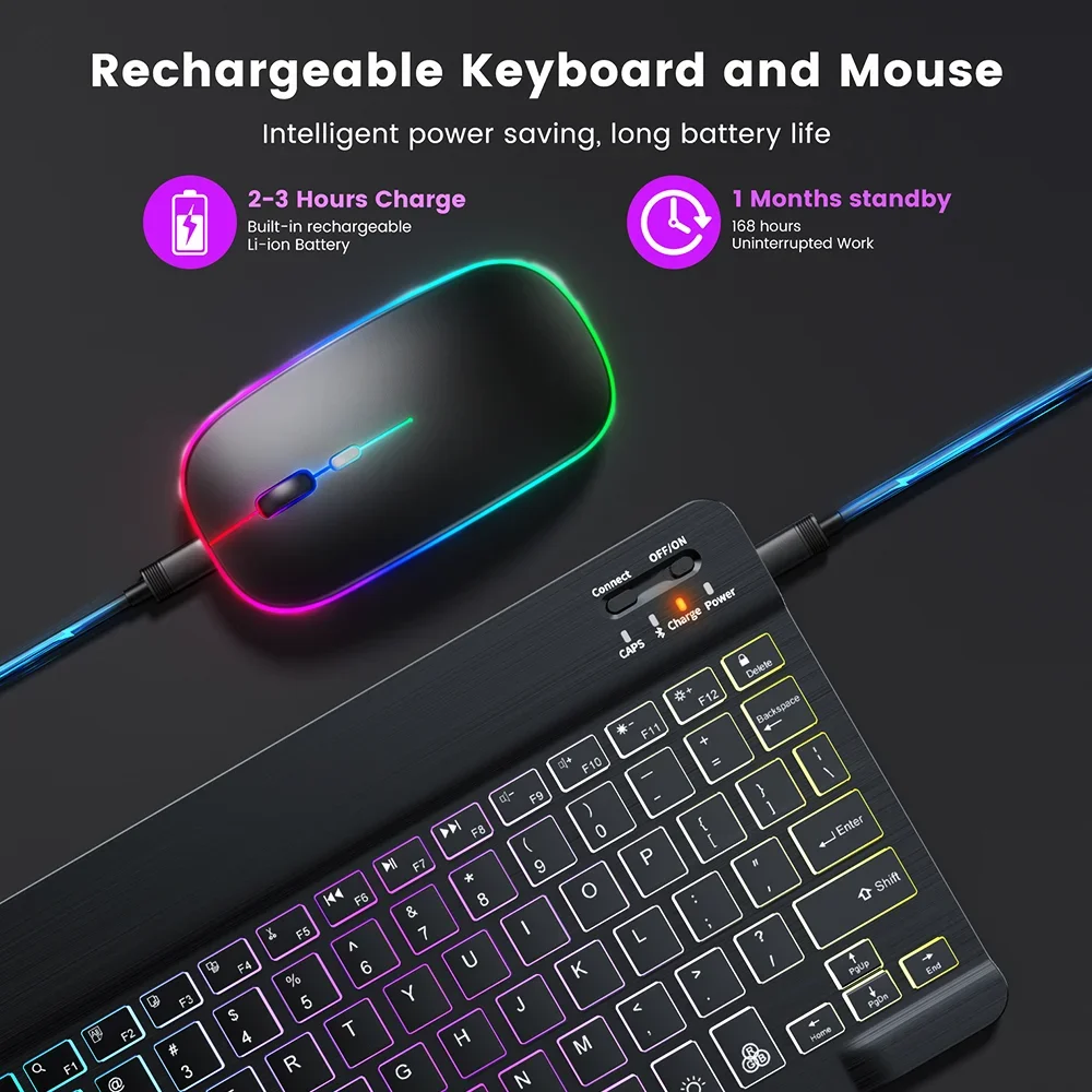 מקלדת עם תאורה אחורית RGB + עכבר Bluetooth נטען