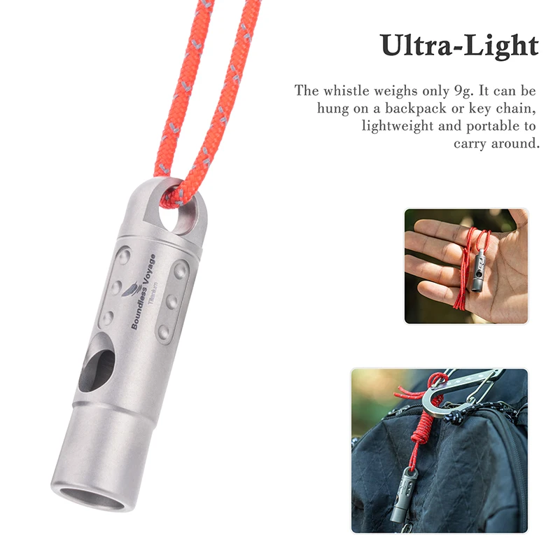 שריקת טיטניום לציוד EDC של Boundless Voyage לטיולים בחוץ, טיולים בהרים וציוד למחנאות, שריקות חירום ובטיחות
