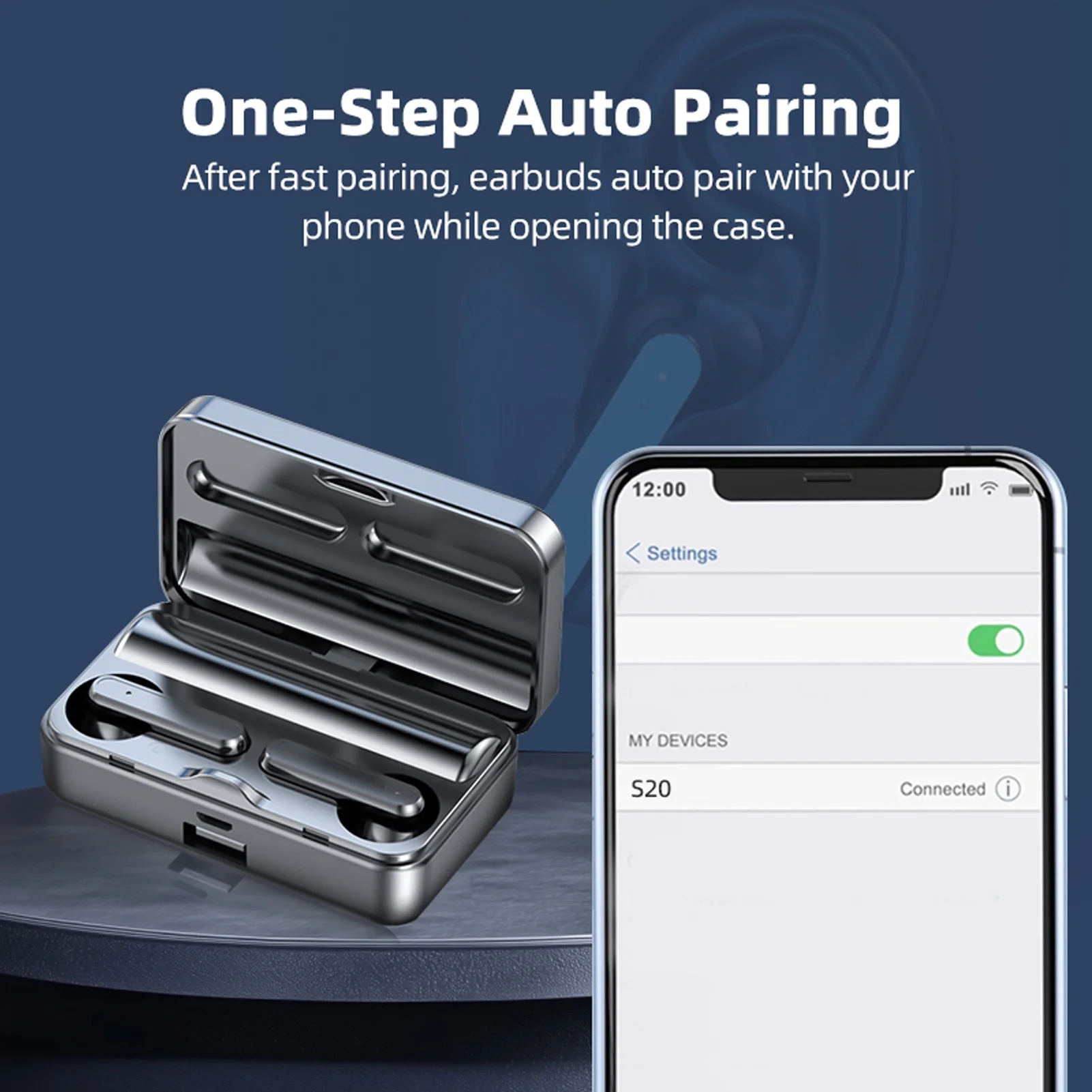 סוללה חזקה: אוזניות 40mAh x 2, תיק טעינה 400mAh, זמן שימוש כ‑4 שעות.