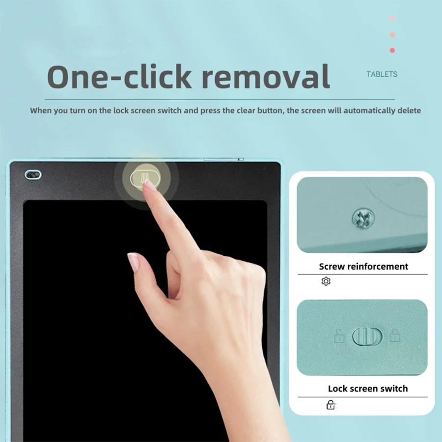 עם טאבלט הכתיבה לילדים, כל מחיקה מתבצעת בלחיצת כפתור אחת, ללא צורך בנייר או בדיו – פתרון אקולוגי וחסכוני שישמור על הסביבה וגם על הארנק שלך.