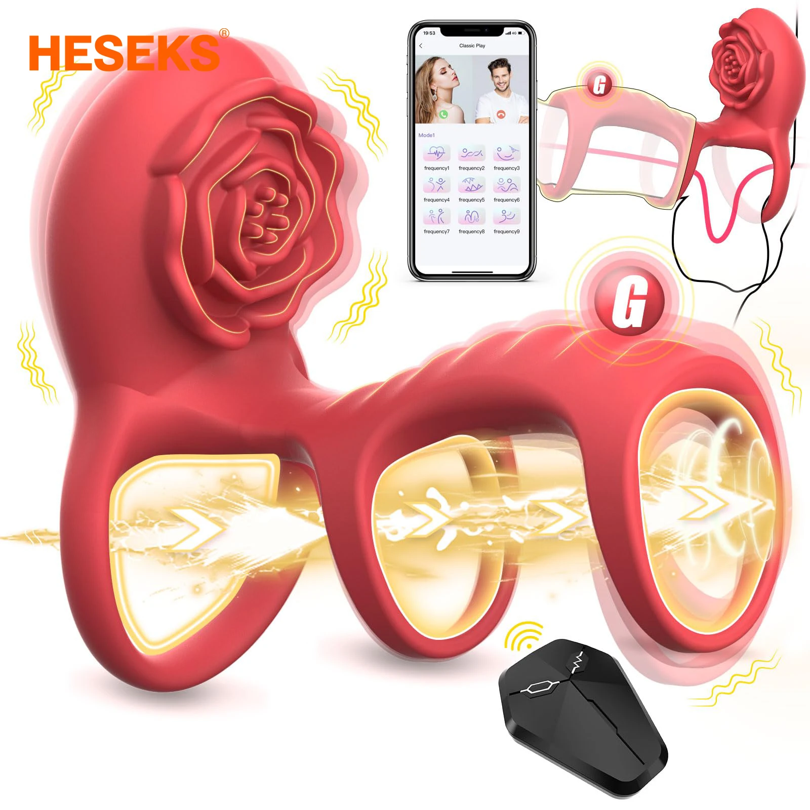 טבעת זין רוטטת לזוגות עם שלט – עיצוב ורד לעונג הדדי | HESEKS | שליטה מרחוק ואפליקציה