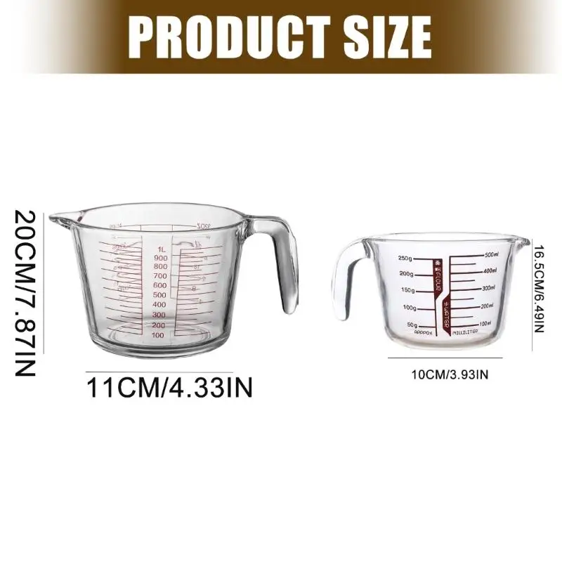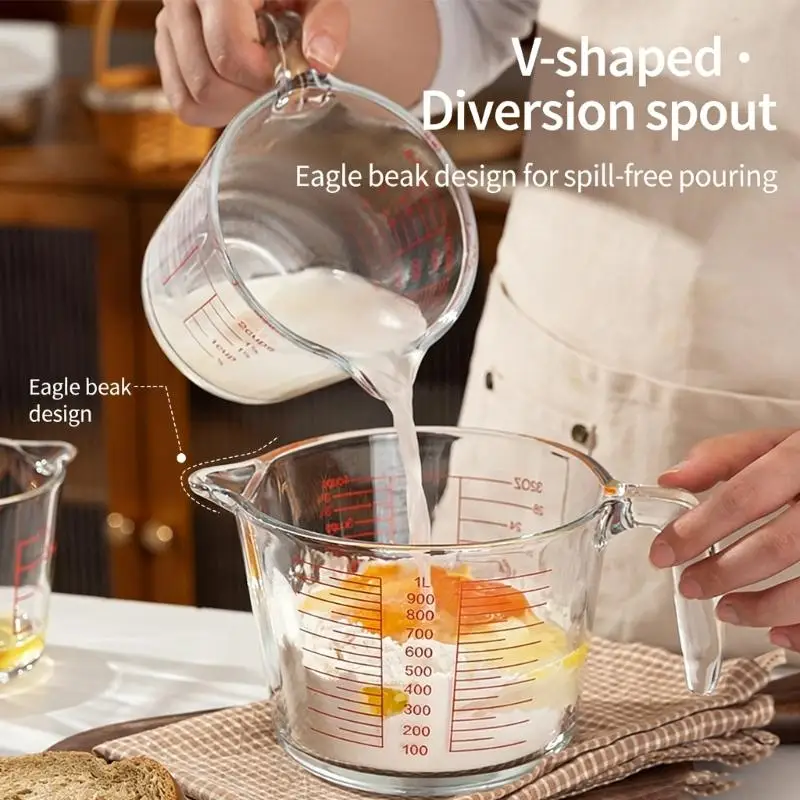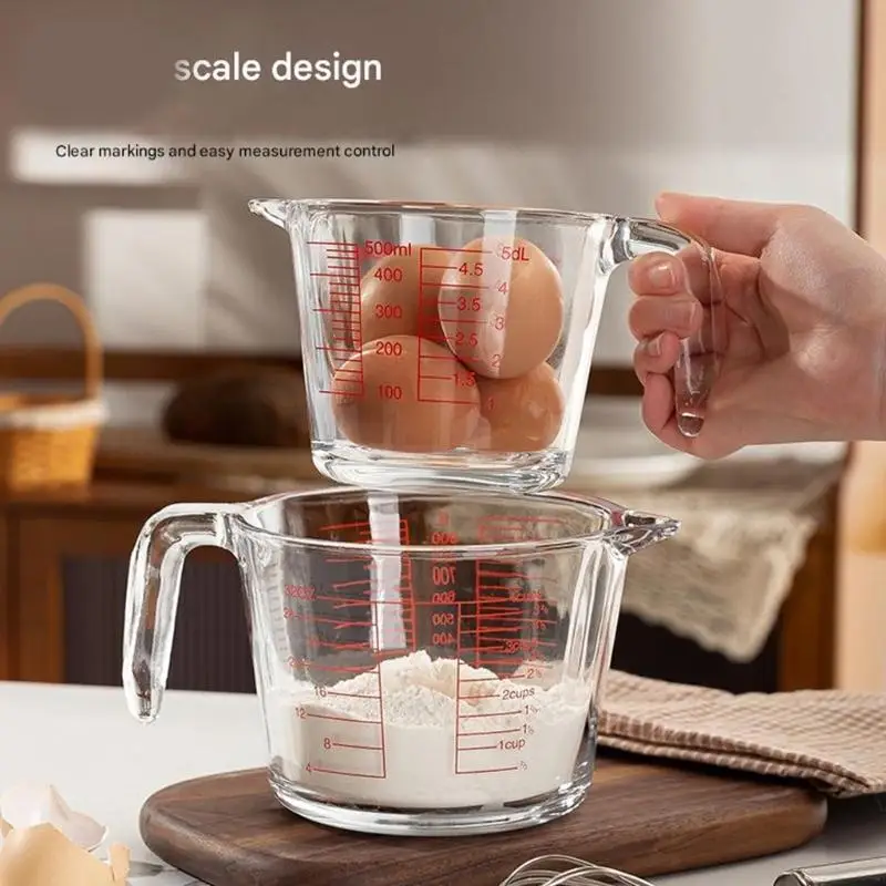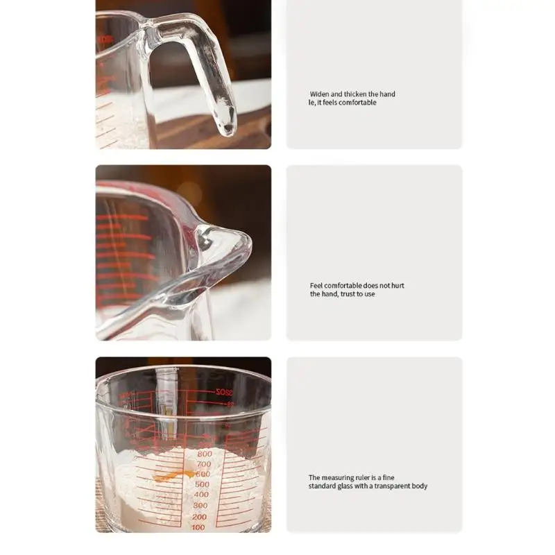🟢 כוס מדידה מזכוכית עבה – מדידה מדויקת למטבח ואפייה
