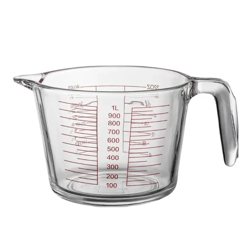 כוס מדידה מזכוכית עבה זו מגיעה עם סימוני מדידה ברורים ומבנה קיבולת גדולה – מושלמת לאפייה, בישול וערבוב מרכיבים שונים.