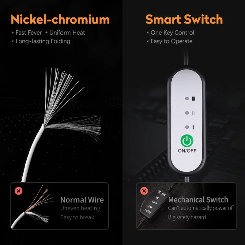 ✅ חימום מהיר תוך דקות – הודות לטכנולוגיית חוטי ניקל, תיהנו מחימום אחיד ומהיר