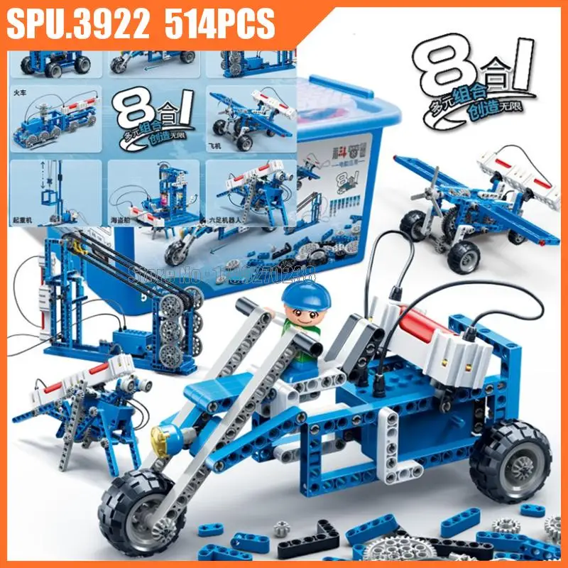 • 6903 514pcs 8in1 אופנוע מטוס רכבת פיראט ספינה עגור רובוט מכונית כבל monMobile בניין חשמלי בלוק צעצוע ילדים