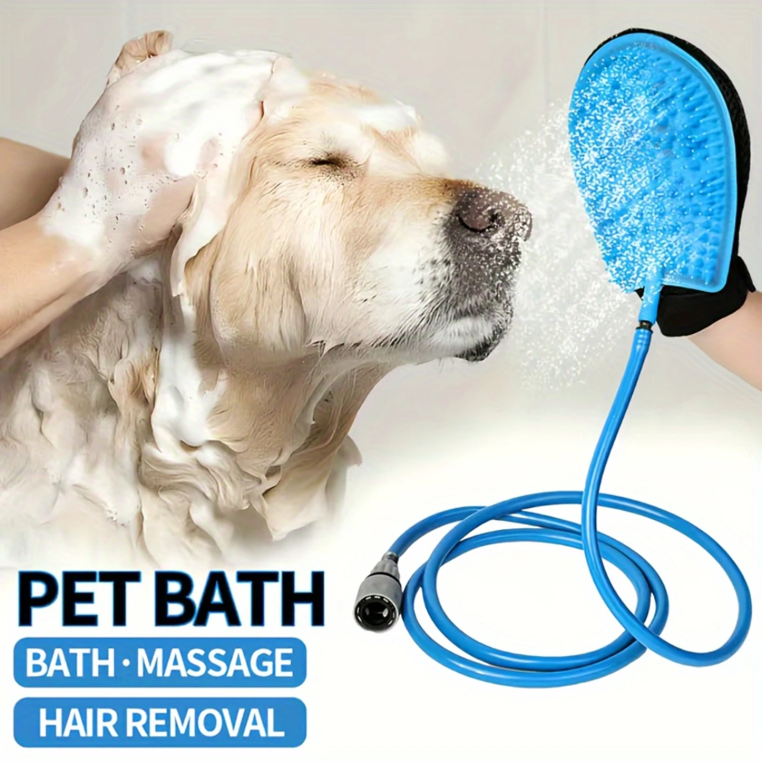 - מברשת עיסוי אמבט לחיות מחמד עם ראש מקלחת, צינור גומי באורך 86.6 אינץ’ וכפפת סיליקון.