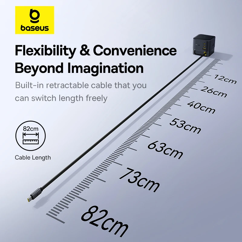 אורך כבל 82 ס”מ, מספק גמישות בחיבור מכשירים לשקע.