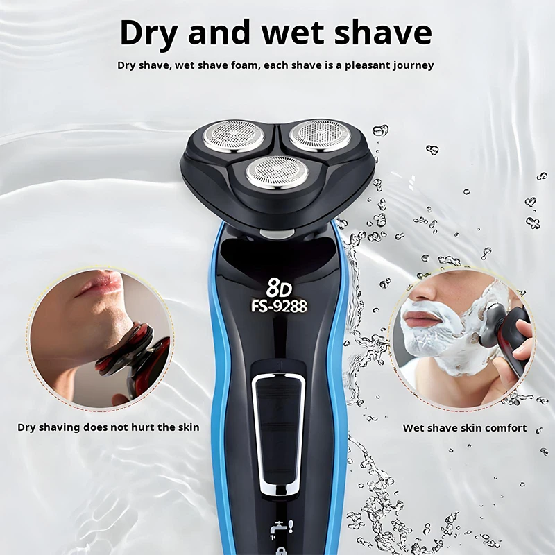 🔄 ראש גילוח צף 4D – שלושה ראשים אלסטיים המסתובבים ומתאימים עצמם למבנה הפנים, לגילוח חלק ומדויק ללא גירויים וללא חתכים.