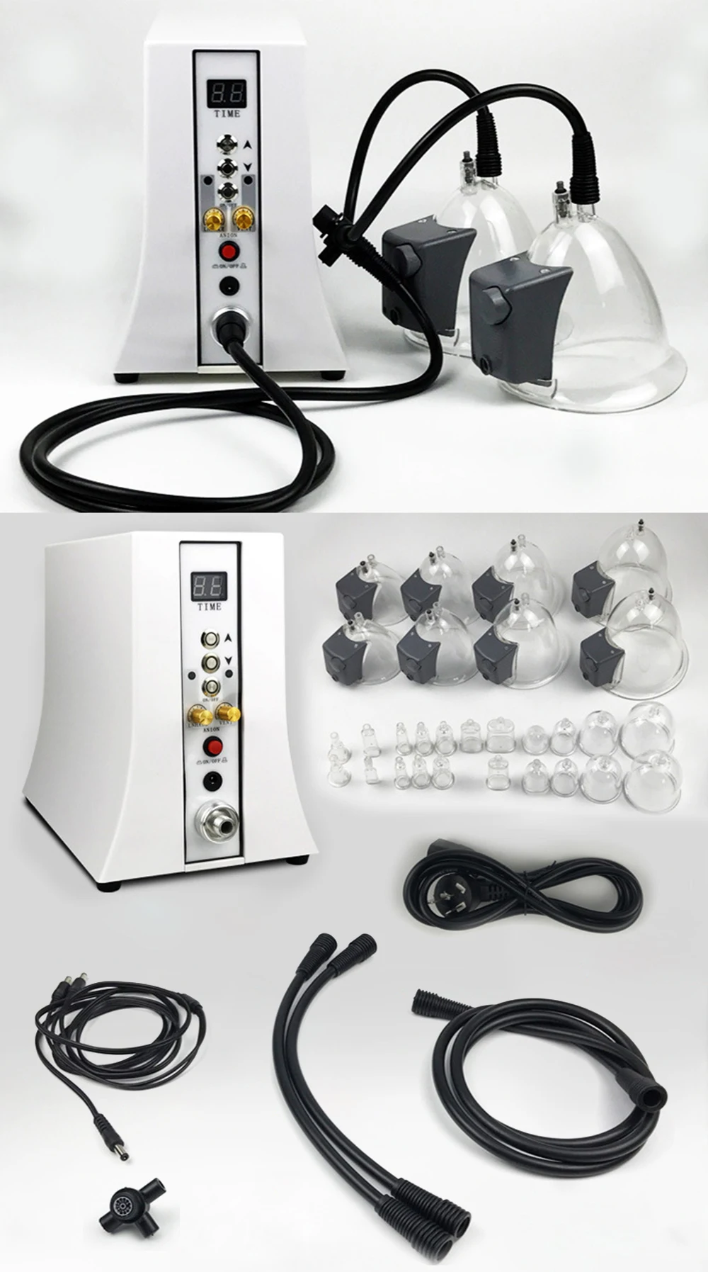 1× מכונה ראשית, 6× כוסות עיסוי, 2× אביזרי הרמה לירך, 8× כוסות רוח, 9× אביזרי גוואשה, 2× ראשי שאיבה, 2× כוסות אזוריות, סט צינורות וחיבורים, כבל חשמל, חוברת הוראות