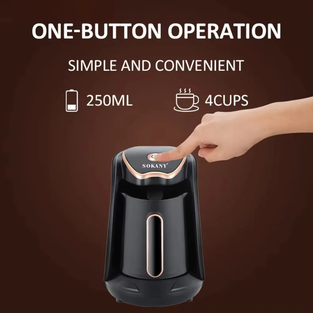 אם אתם חובבי קפה טורקי אמיתי או מחפשים פתרון נוח ומהיר להכנת אספרסו וקפוצ’ינו, מכונת הקפה החשמלית מבית Sokany היא הבחירה המושלמת עבורכם!