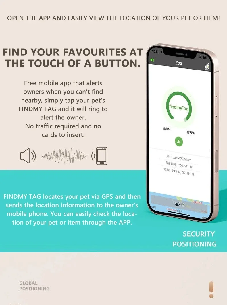 • מתאים לחיות מחמד וחפצים: עיצוב רב-שימושי המתחבר בקלות לצווארון כלב או חתול, או משמש כאיתור לחפצים חשובים.