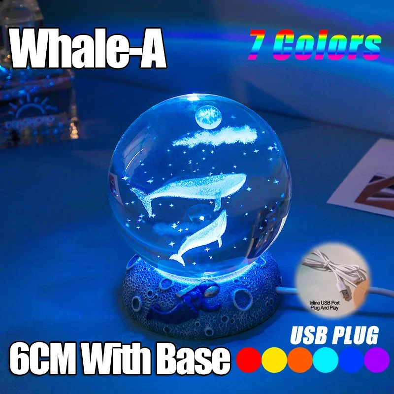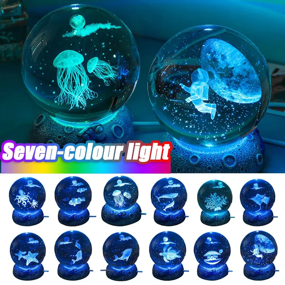 מנורת לילה כדור קריסטל – מדוזות זוהרות, אסטרונאוט ועיצוב ימי קסום!