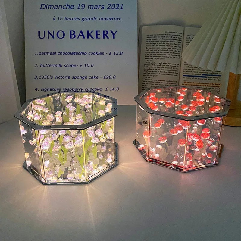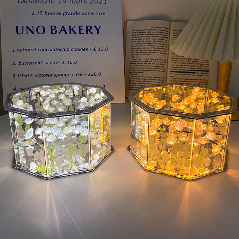 🌸 עיצוב ייחודי – שילוב של מנורת לילה ותיבת נגינה בצורת פרח: ורד או צבעוני