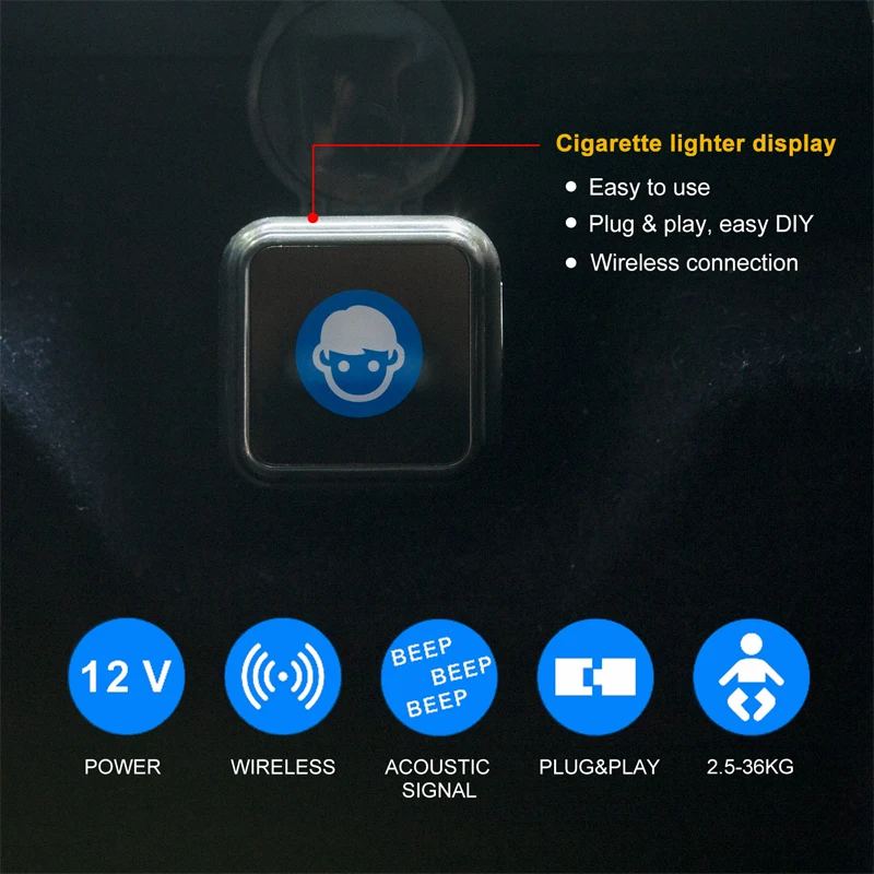 המערכת כוללת חיישן לחץ אלחוטי, התראה קולית ואורית, ומתאימה לכל סוגי הרכב עם מתח DC 12V. היא קלה להתקנה (Plug & Play), אינה דורשת שימוש בסמארטפון, ומתאימה לילדים במשקל 2.5–36 ק”ג.