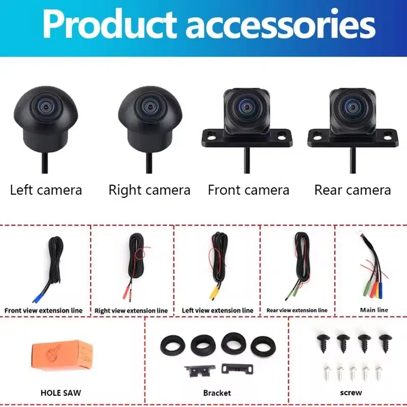 שדרגו את חוויית הנהיגה שלכם עם 360° מצלמת רכב איכותית שתעניק לכם ראייה מלאה מכל כיוון. מצלמה זו מאפשרת צפייה קדמית, אחורית, שמאלית וימנית באיכות HD 1080P, עם זווית רחבה של 170°, כך שתוכלו ליהנות מנהיגה בטוחה בעיר ובכבישים מורכבים. המצלמה החוטית מתחברת לכל מערכת מולטימדיה אנדרואיד עם כניסת וידאו 12 פינים, ואפליקציית 360 מובנית מאפשרת שימוש פשוט ויעיל – אין צורך בהורדת אפליקציות נוספות.
