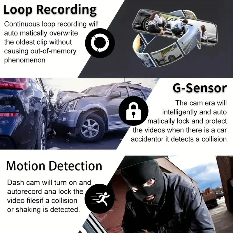 תכונות מיוחדות | חיישן G, מצב חניה, הקלטת לולאה, תמונה הפוכה בעת חניה, ראיית לילה |