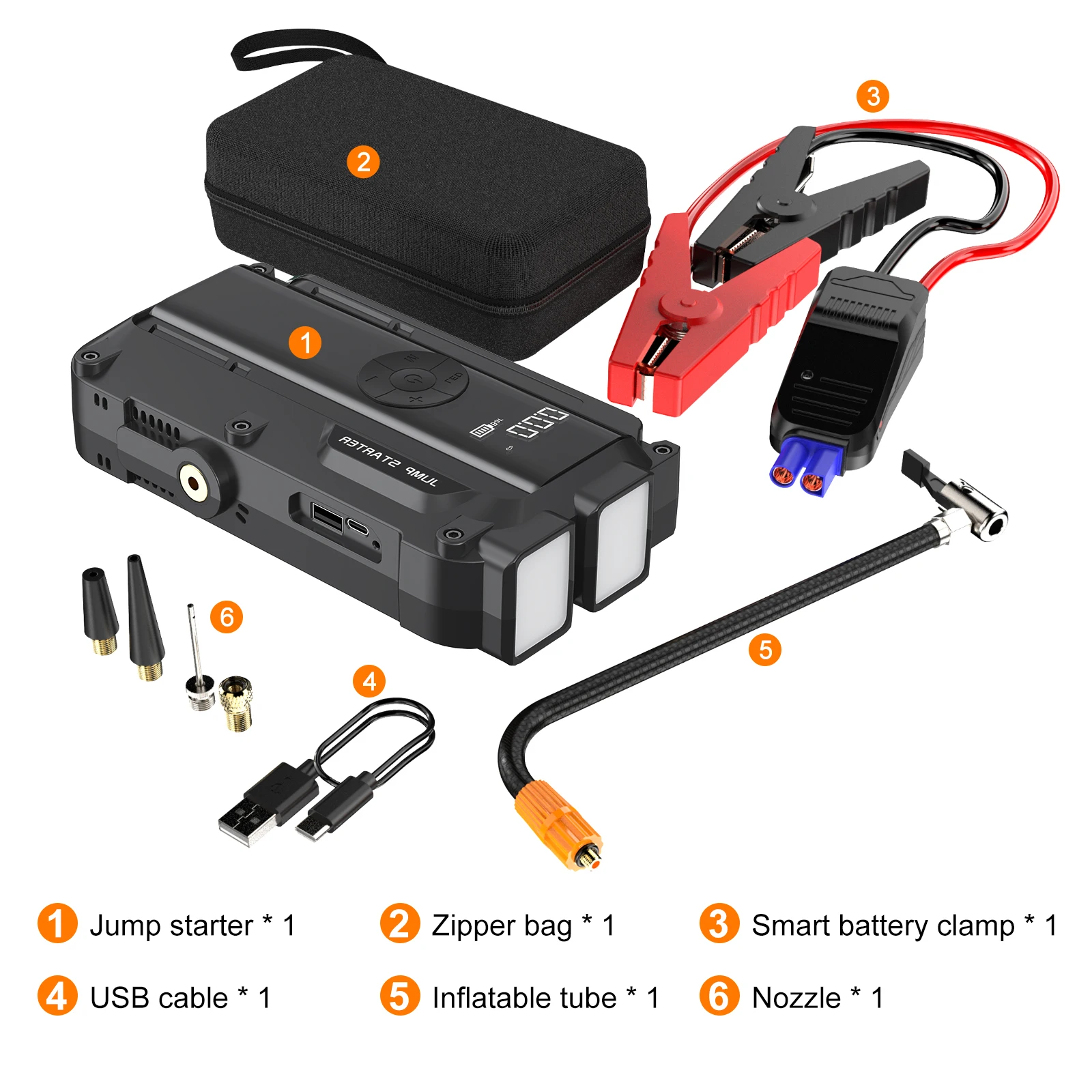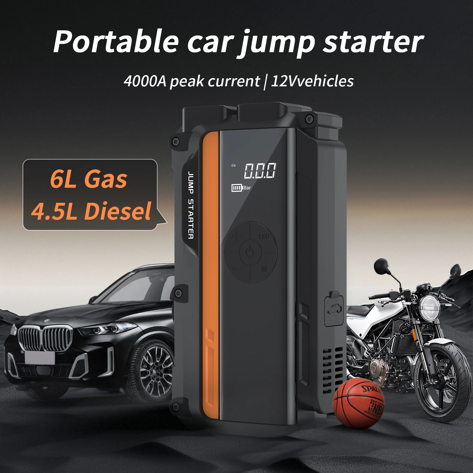 ✅ מתנע קפיצה עוצמתי – זרם שיא של 3000A המסוגל להתניע מנועי בנזין ודיזל במהירות וביעילות.