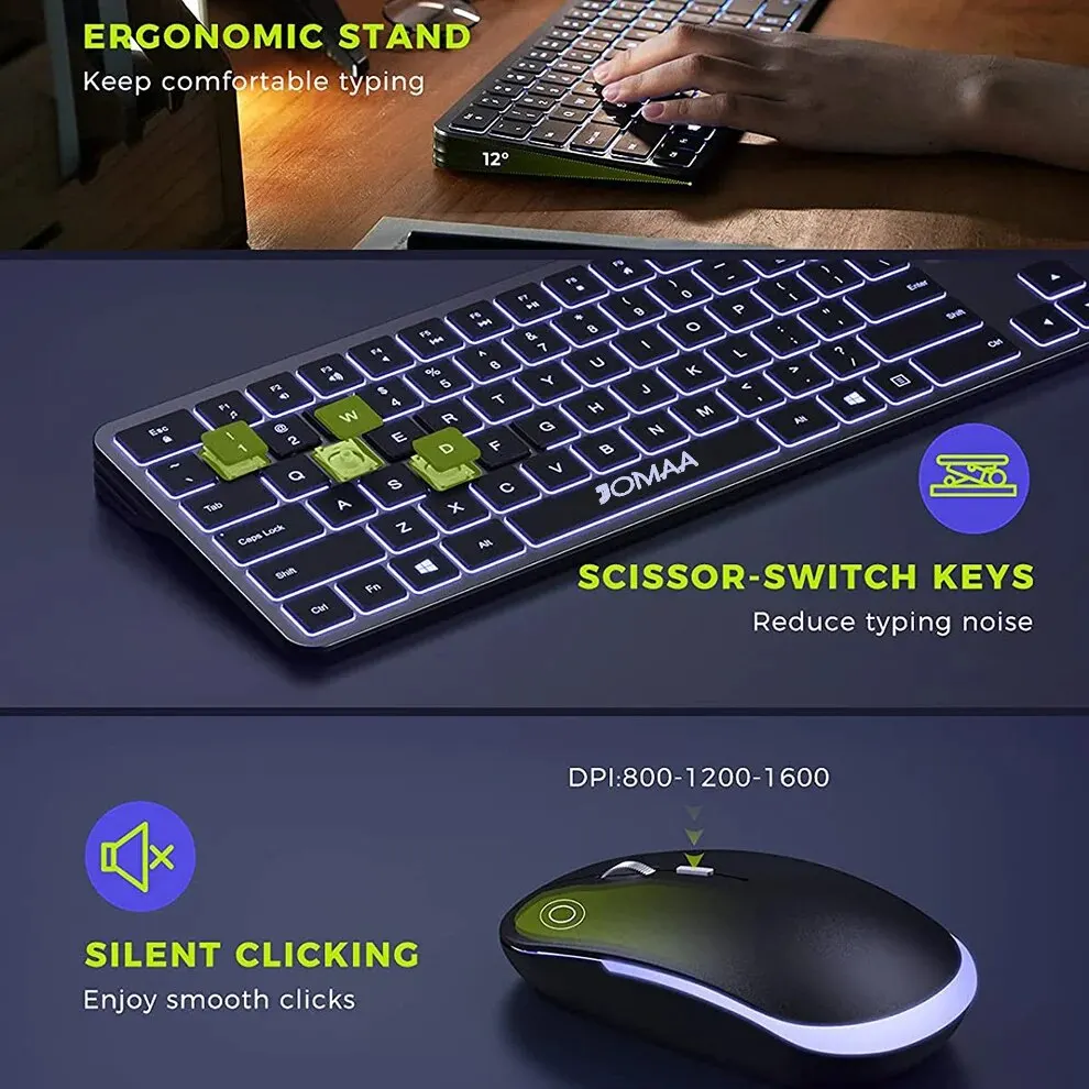 סט מקלדת ועכבר אלחוטיים עם תאורה אחורית – שילוב מושלם לנוחות ועיצוב