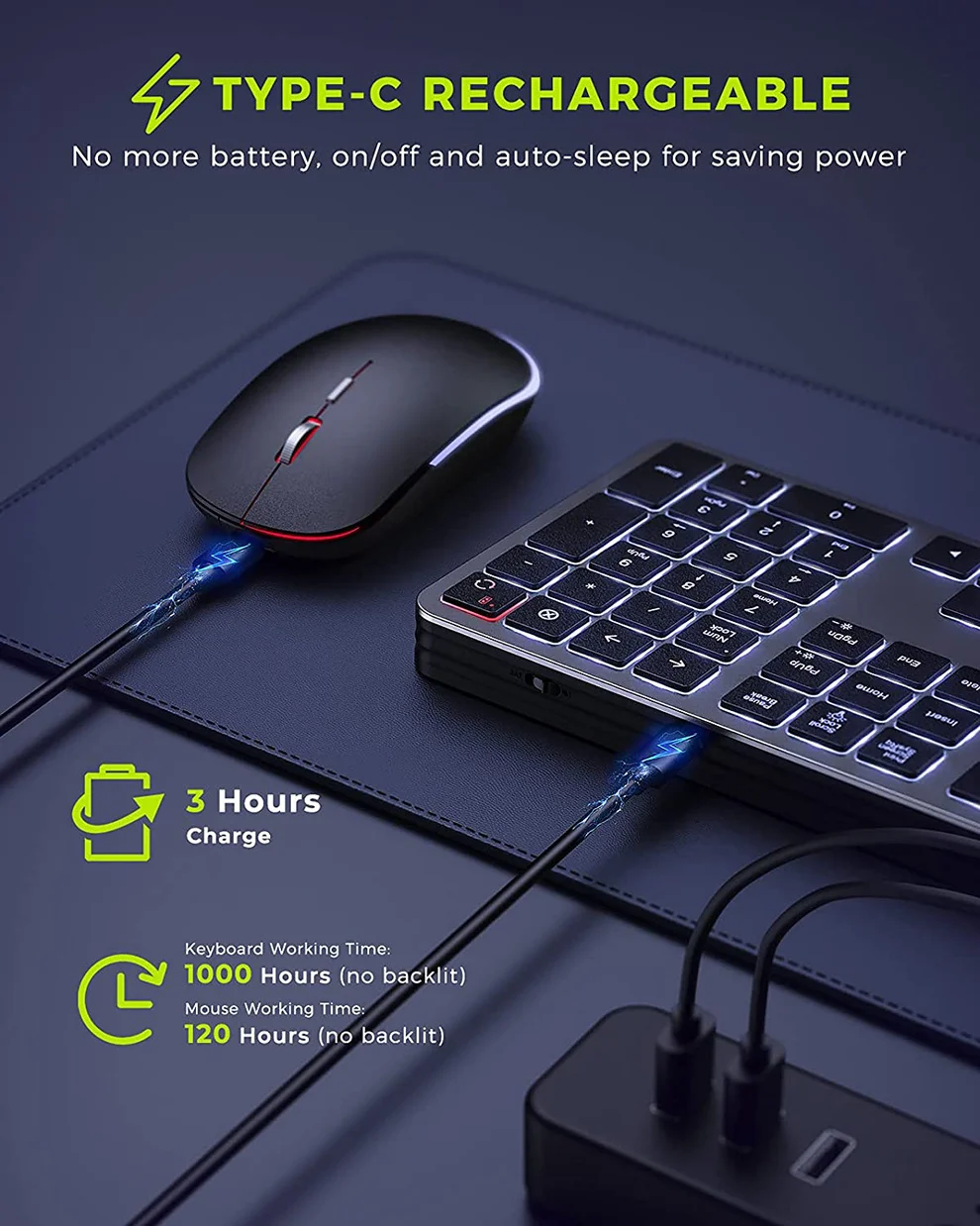 - סוללה: נטענת 500mAh (למקלדת ולעכבר)