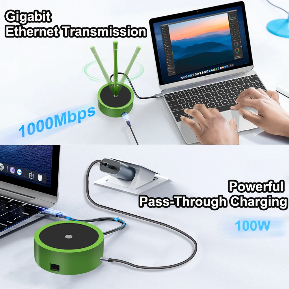 ✅ RJ45 Gigabit Ethernet – יציאת RJ/105 תומכת במ -100 (Gigabit Ethernet) ומספקת חיבור אינטרנט יציב ומהיר, אידיאלי למחשבים ניידים ללא יציאת Ethernet.
