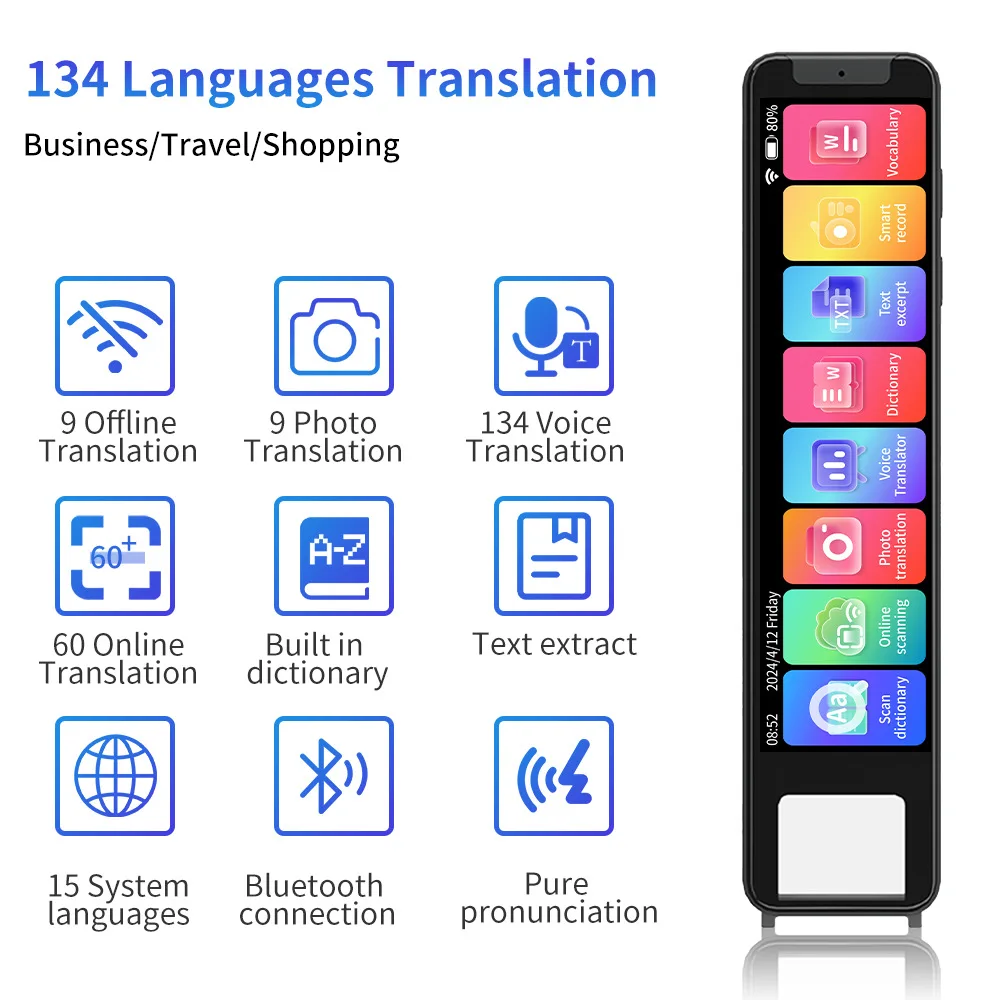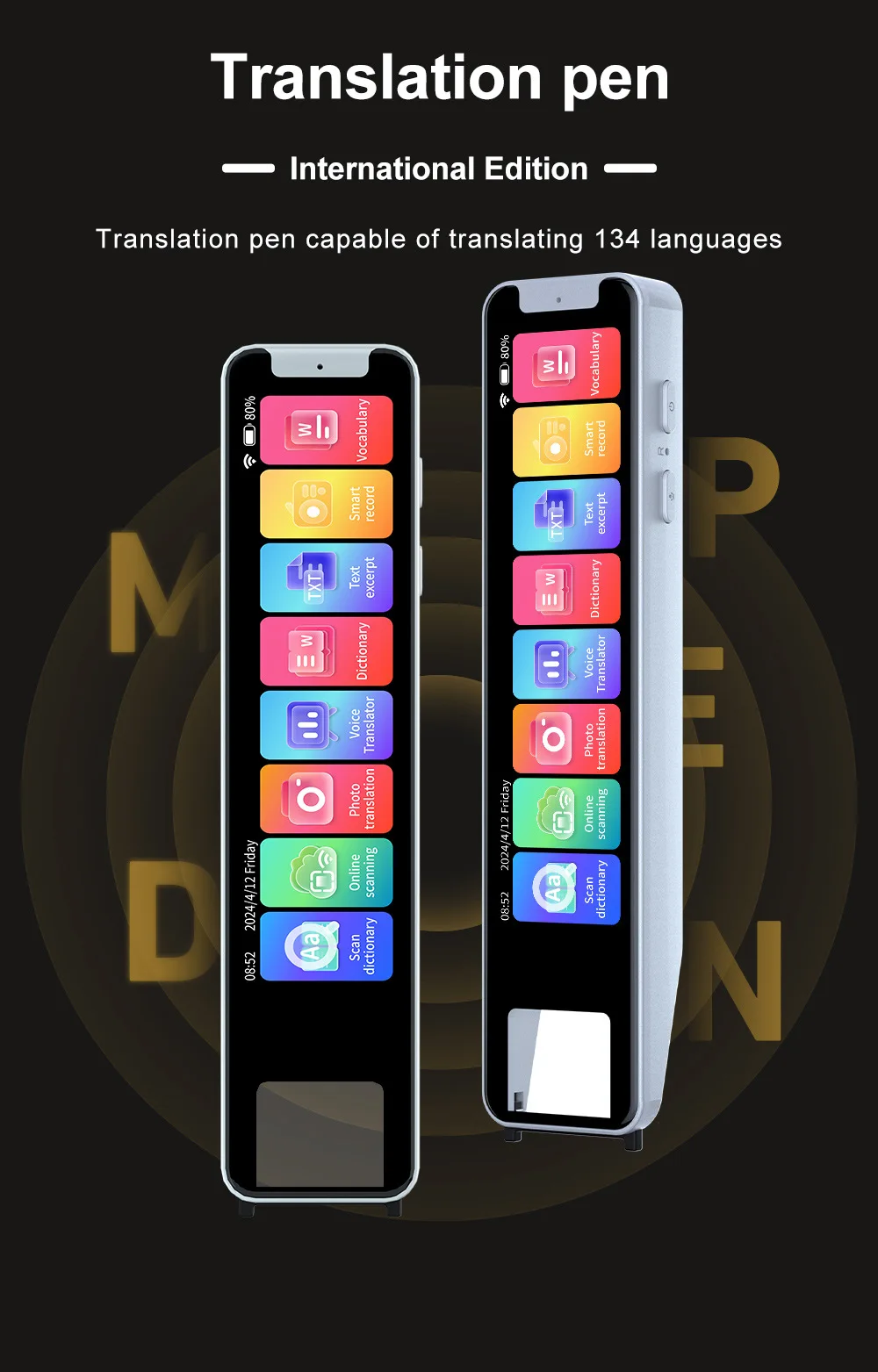 עט תרגום חכם MD23 עם יכולות תרגום קולי, סריקה ותרגום טקסטים ביותר מ-130 שפות! מושלם לסטודנטים, אנשי עסקים ולכל מי שצריך תרגום מהיר ונוח.