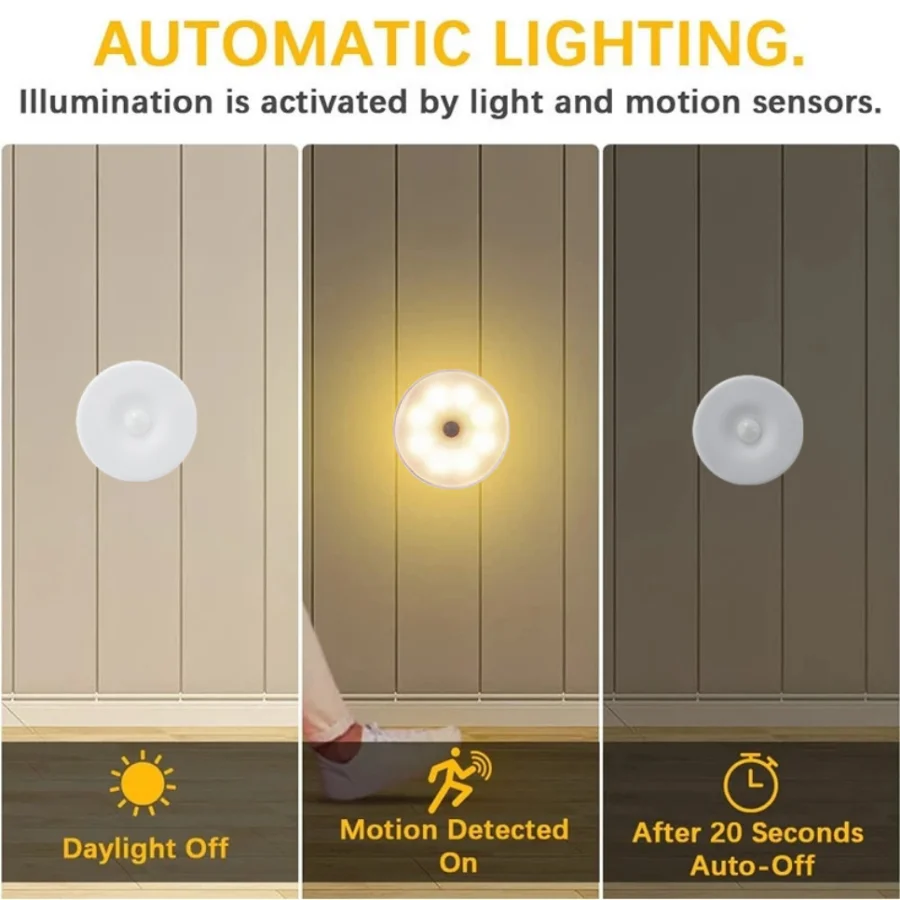 עם מנורת הלילה עם חיישן תנועה וטעינה ב-USB