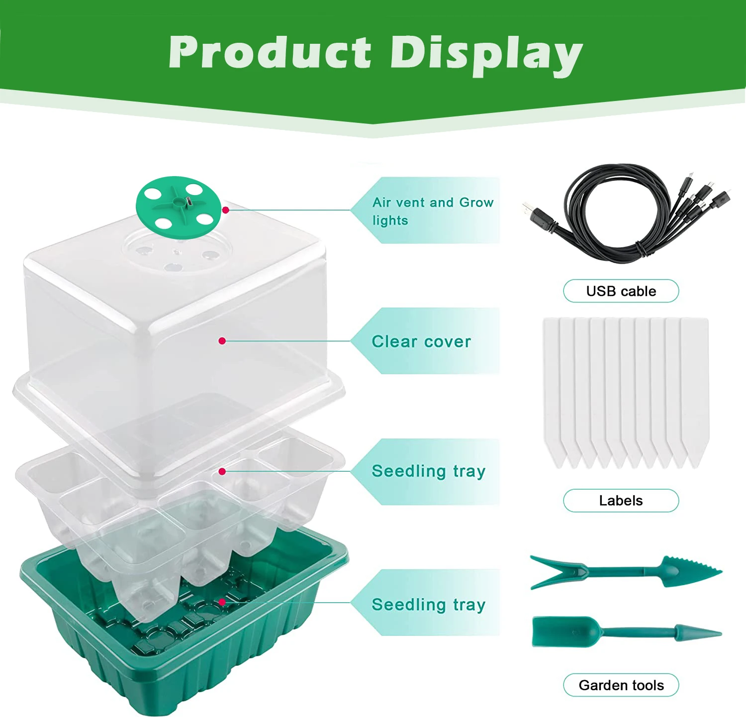 מגש שתילה מקצועי עם כיפה שקופה, תאורת LED חכמה, וטיימר אוטומטי – לגידול שתילים בקלות ובמהירות בבית!