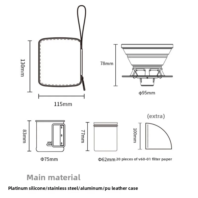 ערכת הקפה הניידת של Joinout היא הפתרון האולטימטיבי לכל חובבי קפה שטח. עם סט ארבעה חלקים קומפקטי, תוכלו להכין קפה טרי בכל מסלול קמפינג, הליכה או טיול בטבע.