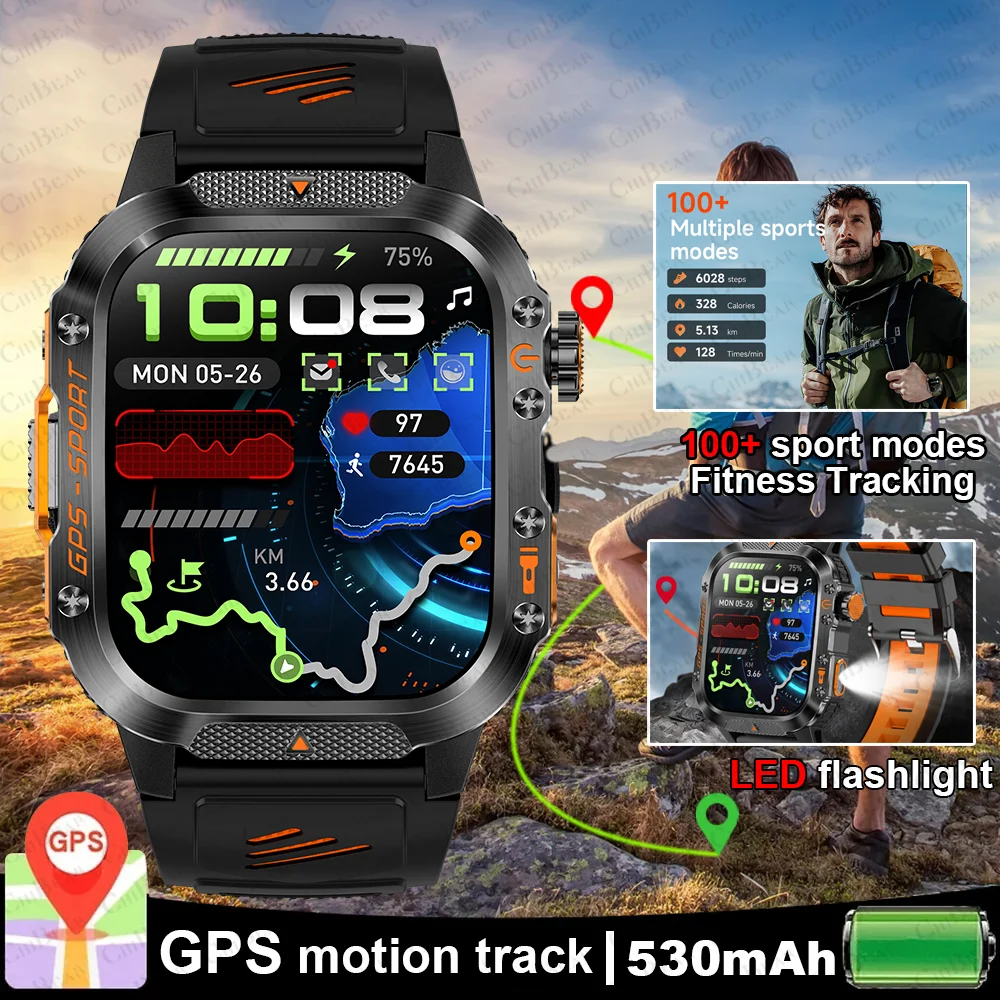 שעון חכם לגברים ולנשים – GPS, מצפן, ניטור בריאות, דופק, לחץ דם, שינה, צעדים, קלוריות, שיחות Bluetooth, עמידות למים, מסך AMOLED 2.01 אינץ’, מצבי ספורט מרובים, תואם Android ו‑iOS
