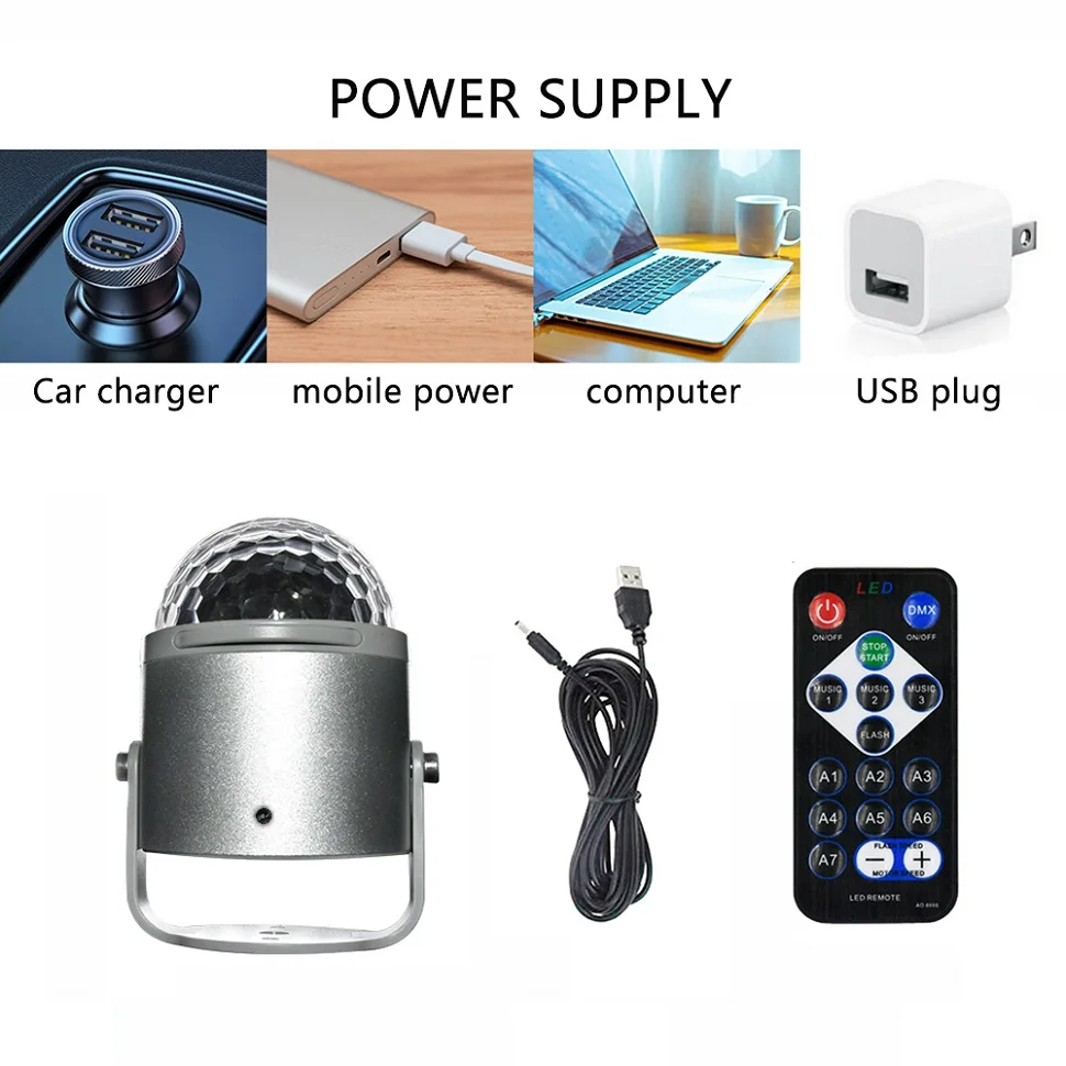 המנורה מופעלת באמצעות צליל – היא מזהה מוזיקה וקצב הריקוד ומסנכרנת את האור בהתאם, מה שהופך את המסיבה לאינטראקטיבית ומהנה במיוחד. הקומפקטיות והעיצוב הנייד מאפשרים להציב את המנורה על שולחן, מדף או לתלות אותה בקלות, ומספקים אווירה קסומה ומרקידה.