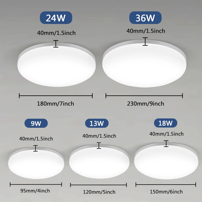 ✔ 36W (3240lm): קוטר 23 ס”מ – לכיסוי 18-25 מ”ר