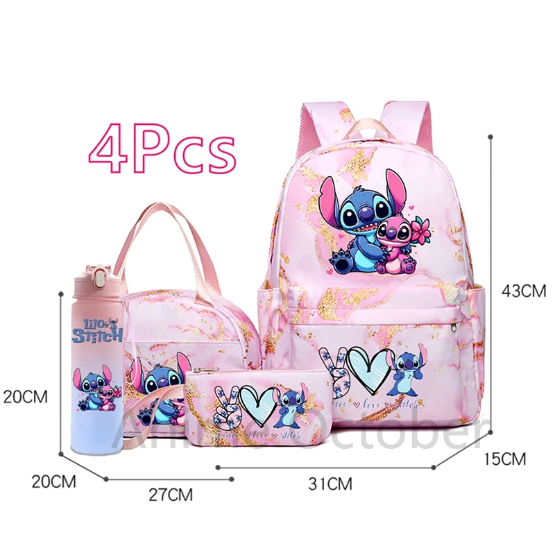 הסט תיק גב לילדות  עם דמות לילו וסטיץ’ כולל 4 פריטים חיוניים: