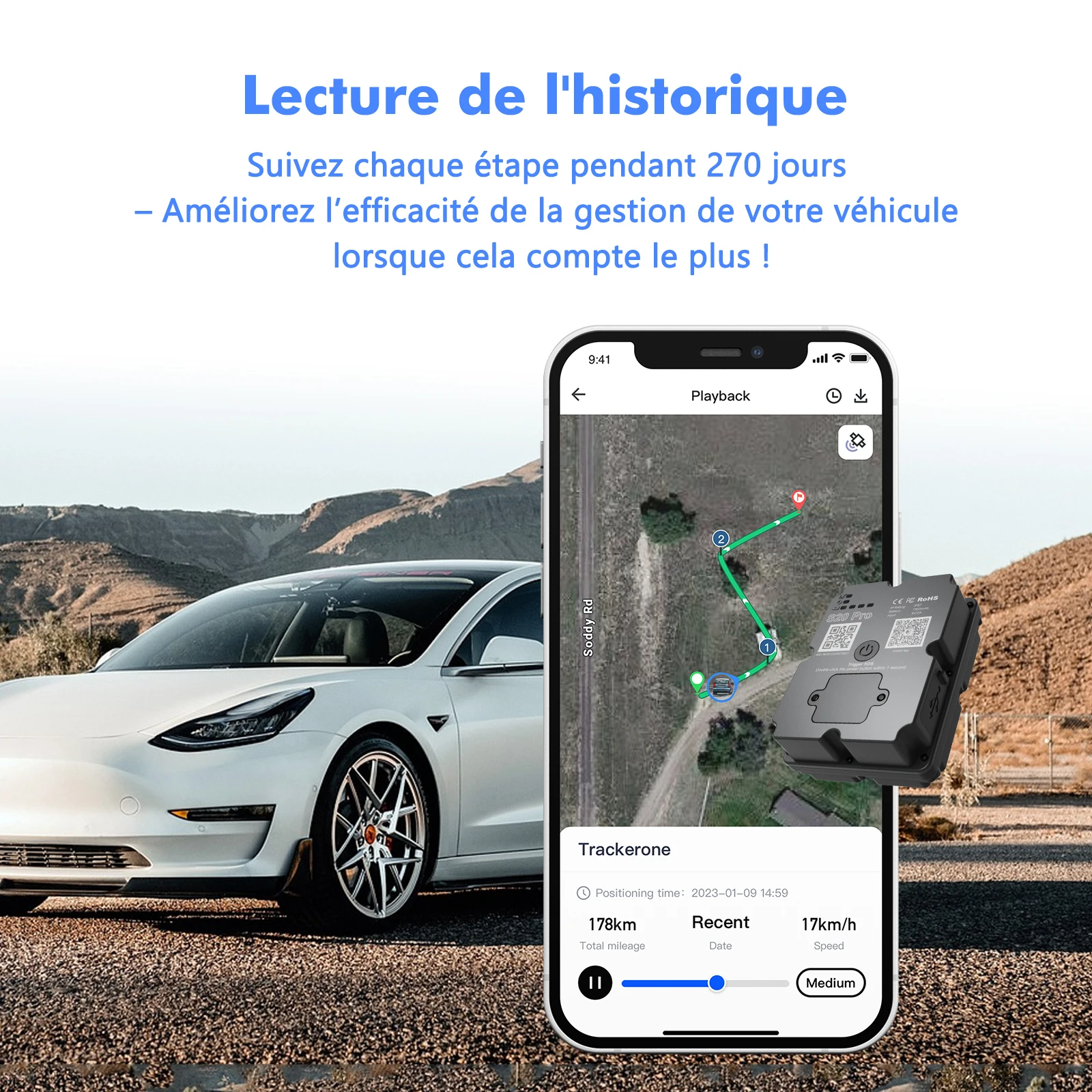 מעקב חי בזמן אמת מאפשר לראות את מיקום הרכב בכל רגע, בעוד שהיסטוריית המסלולים שומרת מידע עד 270 יום אחורה. בנוסף, קיימת יכולת גדר אלקטרונית עם התראות מידיות בעת יציאה או כניסה לשטח שהוגדר מראש.